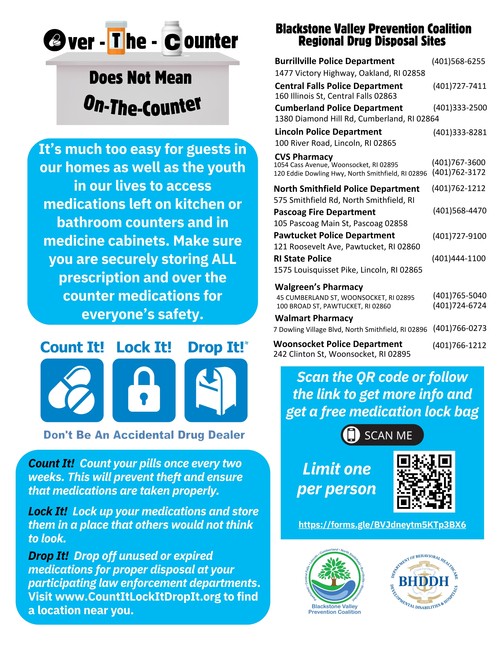 For more information about how to receive a prescription lock bag for safe storage of medications please call 401-859-2500 Ext. 1